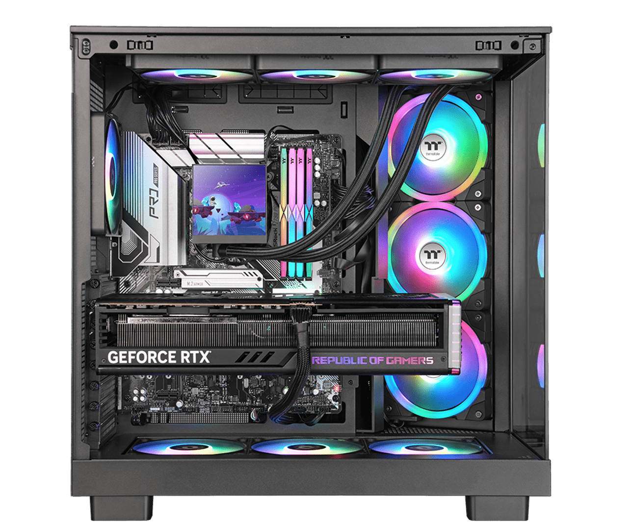 Forbedr dit system med omfattende tilpasningsmuligheder ved at synkronisere TT RGB PLUS-kompatible komponenter for at skabe en sammenhængende og personlig RGB-lyskonfiguration.