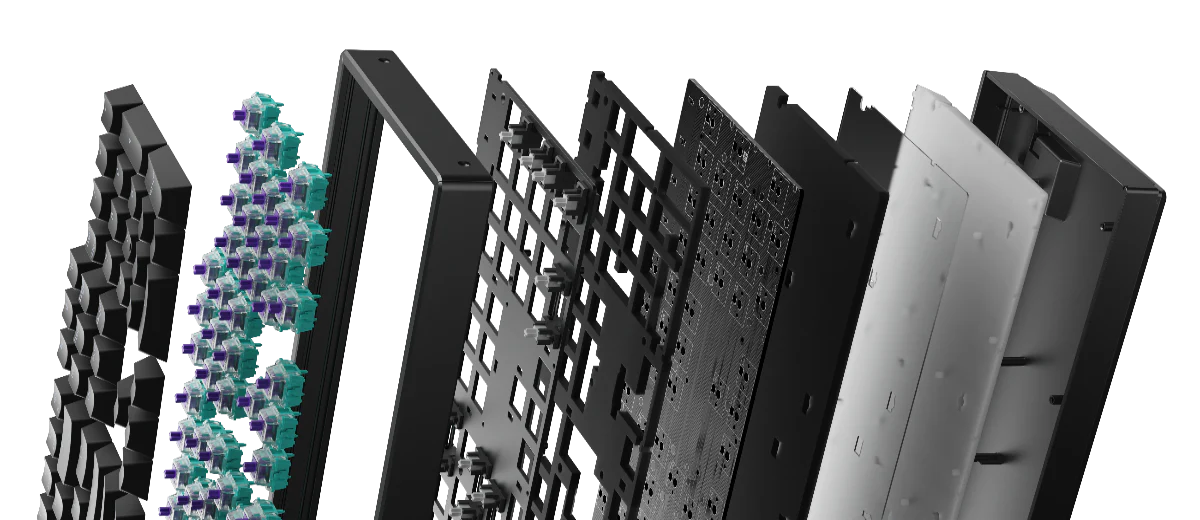 Keychron K10 HE leverer enestående akustiske egenskaber gennem præ-smurte kontakter, 3,5 mm tyk EVA-akustikskum, EPDM-skum og en indvendig silikonepude. Disse komponenter arbejder sammen for at skabe en tilfredsstillende, blød og resonant tasteoplevelse, der forbedrer den samlede brugeroplevelse.