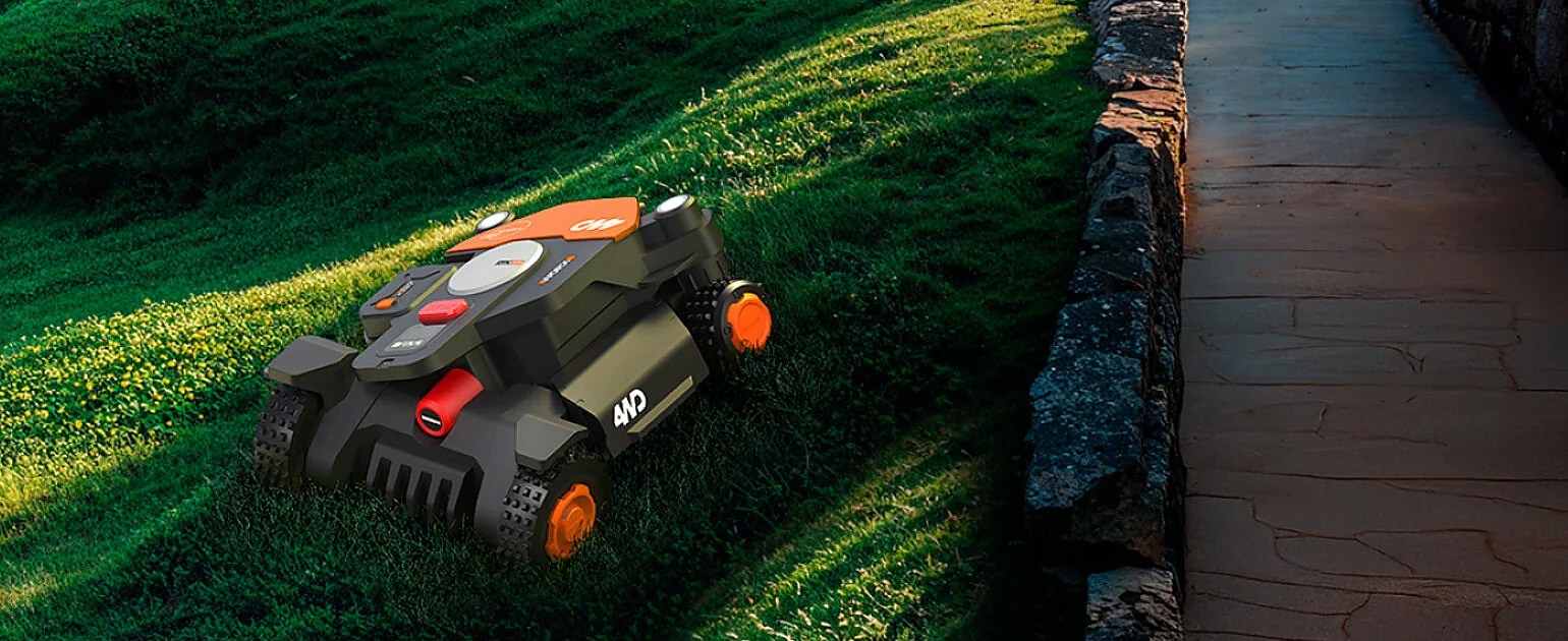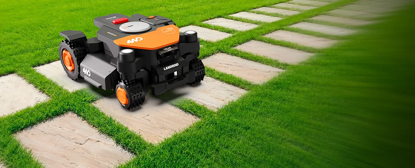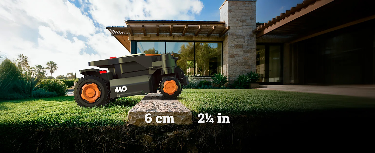 Konstrueret til alle typer terræn: Worx Landroid Vision Cloud 4WD WR340E er bygget til at håndtere komplekse græsplæner på op til 600 m² — fra stejle skråninger og ujævnt underlag til avancerede udformninger.