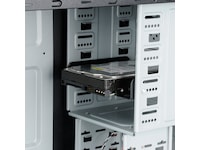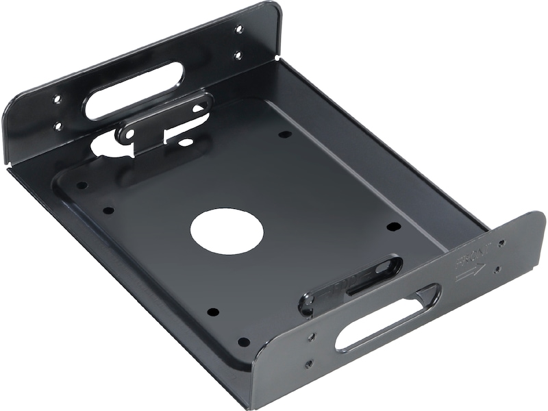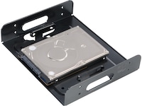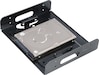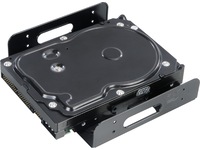 Mounting adapter allows for installing single 2.5" or 3.5" disk drive into a 5.25" PC drive bay. Anti vibration pads eliminate HDD vibration and prevent structure born noise and resonance. Suitable for all SDD and HDD IDE PATA / SATA drives. Black coating.