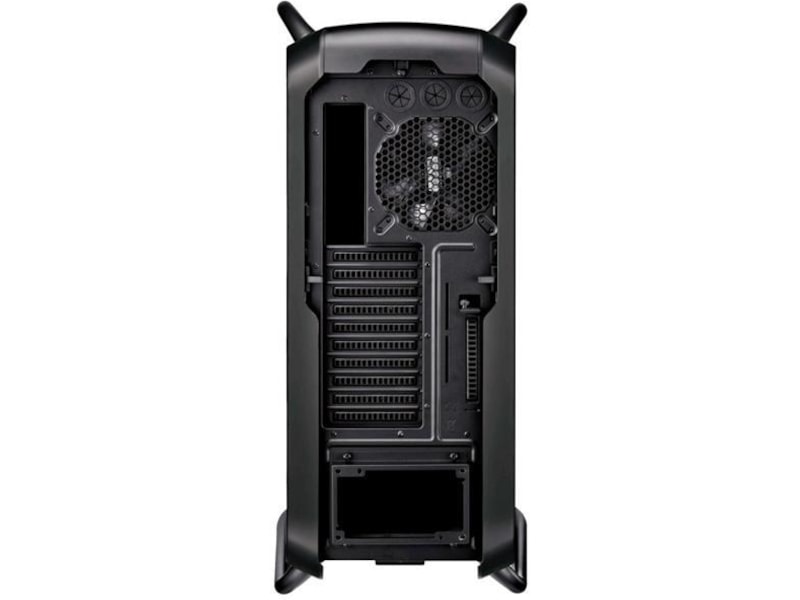 | Kølesystem | Front: 200 mm ventilator x 1 / 700 rpm / 19 dBA / 1 x 120/140 mm blæser understøttet, Intern: 120 mm blæserstativ x 1, Side: 120 mm blæserstativ x 2, Intern: 120 mm ventilator x 2 / 1200 rpm / 17 dBA, Top: 120 mm ventilator x 1 / 1200 rpm / 17 dBA, Top: 120 mm blæserstativ x 3 / 1 x 200 mm blæser eller 2 x 140 mm blæser understøttet, Bagside: 140 mm ventilator x 1 / 1200 rpm / 19 dBA |