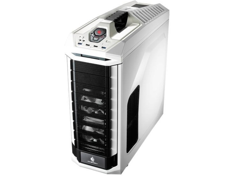 | Kølesystem | Top: 200 mm ventilator x 1 / 1000 rpm / 23 dBA / 2 x 120/140 mm blæser understøttet, Nederst: 120 mm blæserstativ x 2, Bagside: 140 mm ventilator x 1 / 1200 rpm / 19 dBA, Front: 120 mm ventilator x 2 / 1200 rpm / 17 dBA / hvid LED |