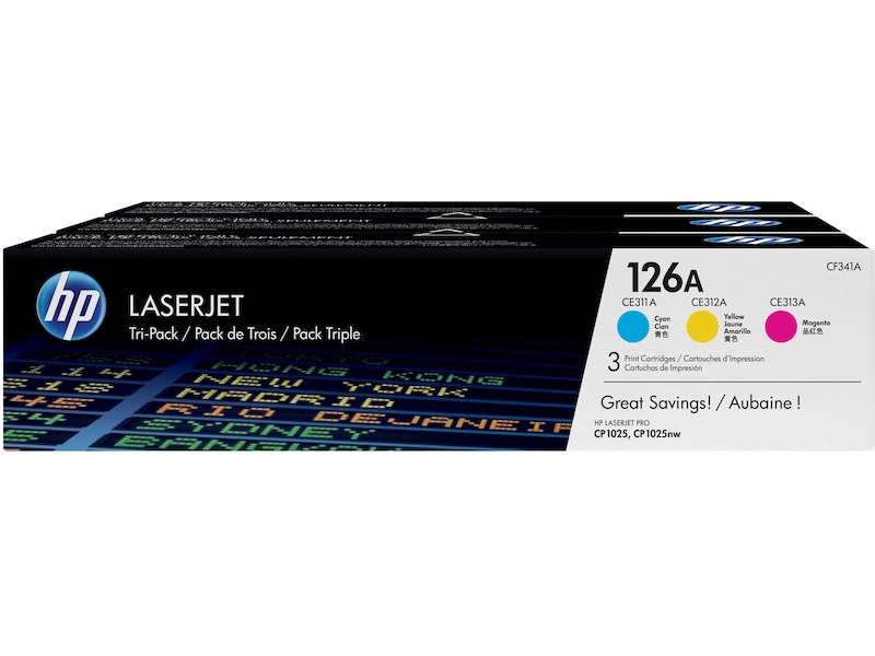 | Med forbrugsartikler | 1 x tonerpatron (gul) - op til 1000 sider, 1 x tonerpatron (cyan) - op til 1000 sider, 1 x tonerpatron (magenta) - op til 1000 sider |