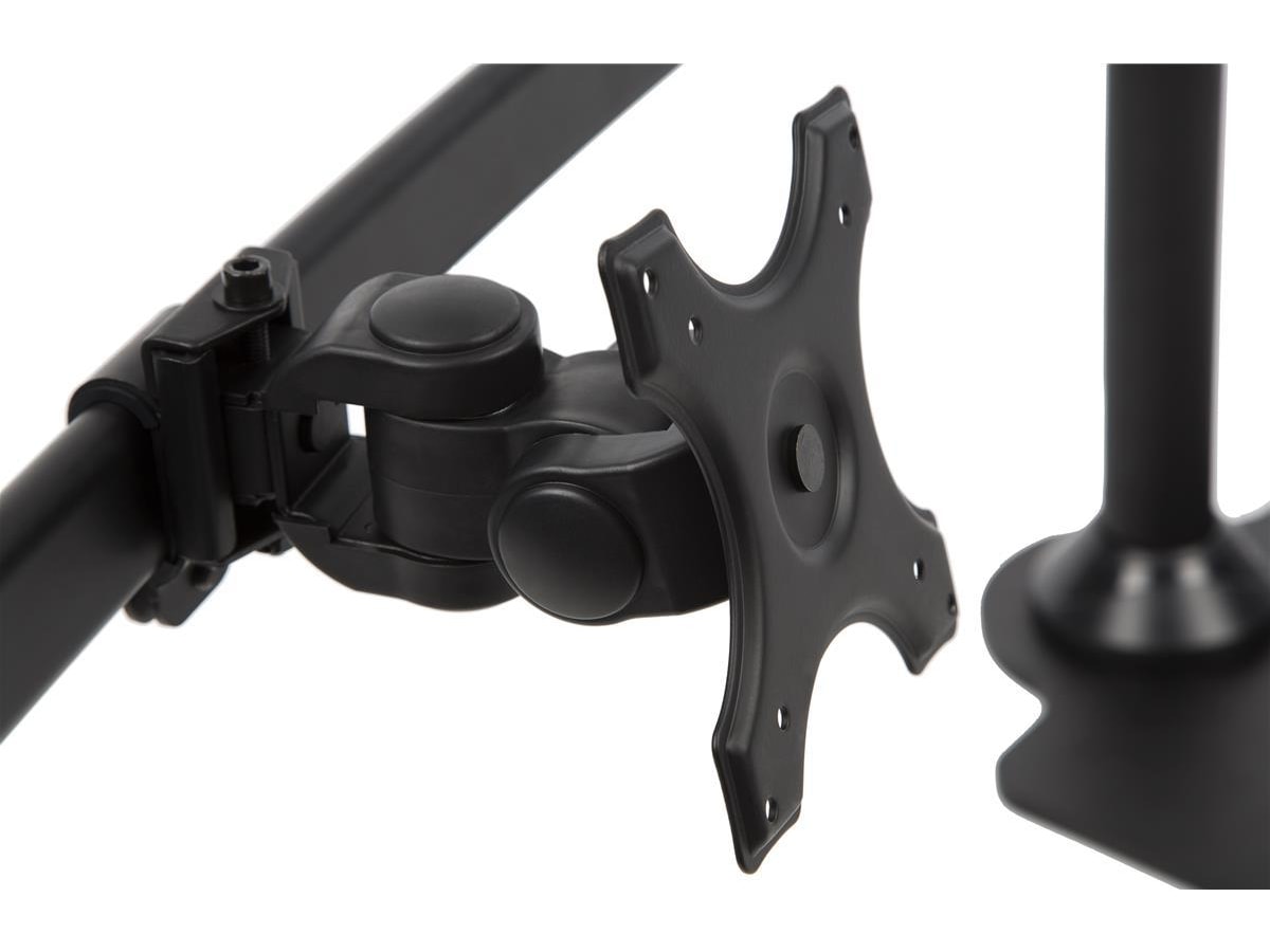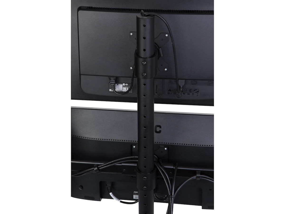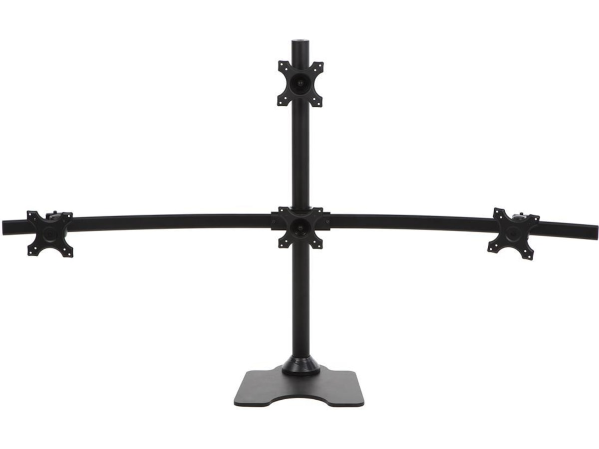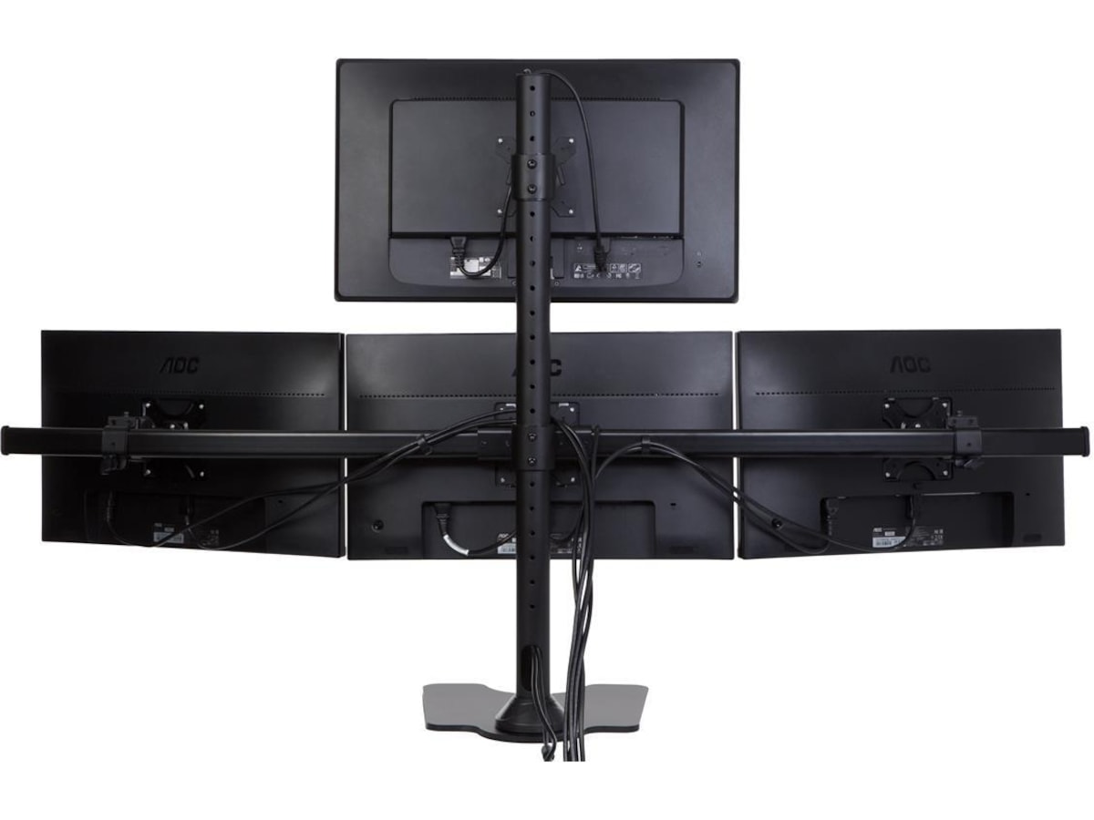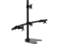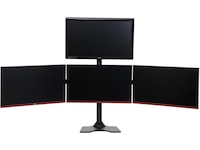 iiglo Quadra Monitor Stand giver dig mulighed for at opsætte fire skærme sammen på dit skrivebord. Dette lader dig få mere brugbar plads på dit skrivebord, og hjælper dig med at forblive produktiv og organiseret. Beslaget kan indstilles som fritstående med et stabilt stativ eller kan til ekstra sikkerhed skrues fast på dit skrivebord. Det leveres med en 75/100 mm VESA-plader, der muliggør en nem installation af de fleste 13-27” skærme.