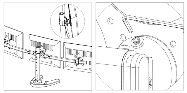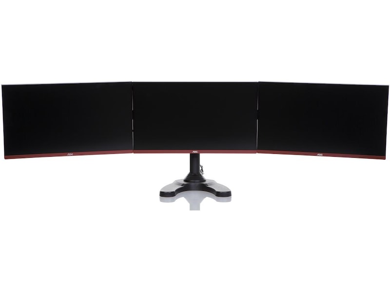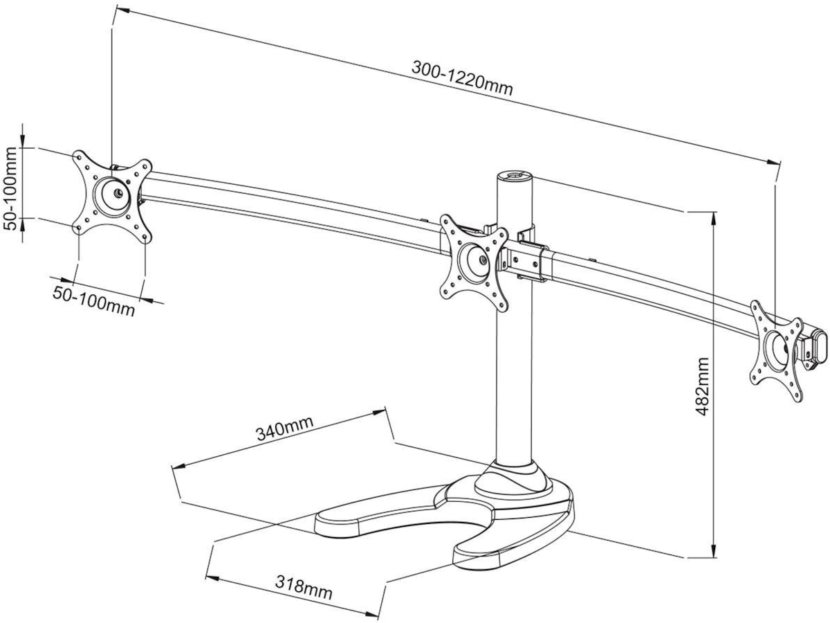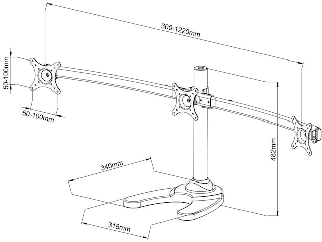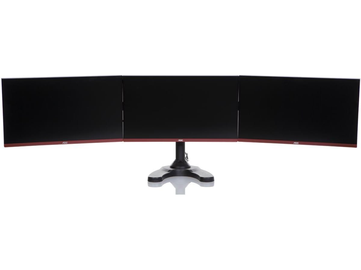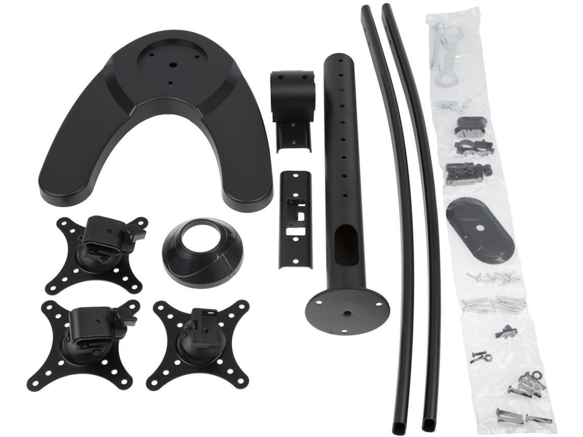 iiglo Triple Monitor Stand giver dig mulighed for at opsætte tre skærme sammen på dit skrivebord. Skærmene kan vinkles, roteres og vippes individuelt. Skærmenes højde er også justerbar. Beslaget kan indstilles som fritstående med et stabilt stativ eller kan til ekstra sikkerhed skrues fast på dit skrivebord. Det leveres med en 75/100 mm VESA-plader, der muliggør en nem installation af de fleste 13-24” skærme.