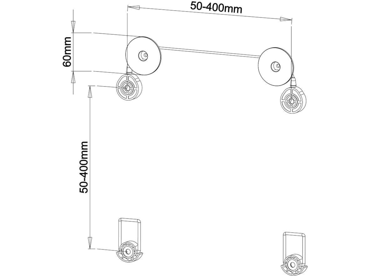En simpel ophængningsløsning til skærme med 400x400 VESA-beslag. Fylder lidt og er meget let at montere.