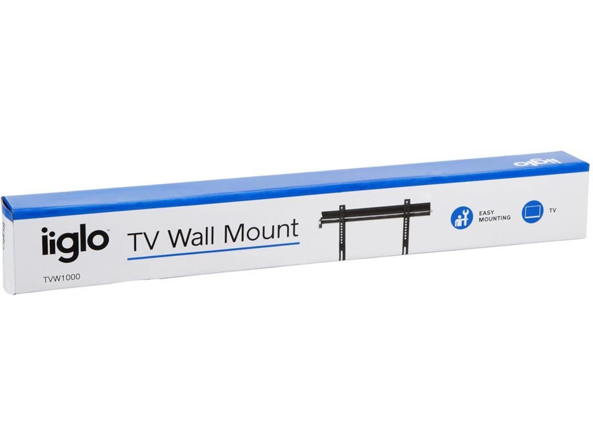 iiglo TVW1000 er et tyndt vægbeslag designet til 23'' til 55'' fladskærme. Det er lavet i sortlakeret stål og tåler en maksimal vægt på 50kg. Understøtter universel VESA-standard op til 400x400, og kan monteres på tv med buet og flad bagside.