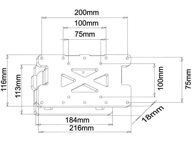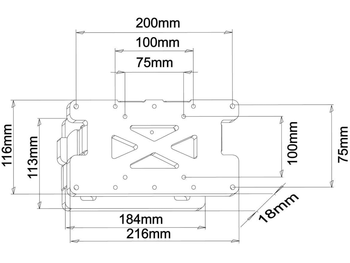 Dette vægbeslag er meget let at montere. Det er en enkel ophængsløsning til mindre fladskærme. Det fastmonterer din skærm, og har ingen indstillingsmuligheder. Beslaget er meget solidt, og skærmen hænger sikkert i den robuste vægplade. Passer til TV med flad og buet bagside. Det rager kun 18mm ud fra væggen. Du kan vælge, om du vil have fladskærmen i liggende (vandret) eller stående (lodret) position.