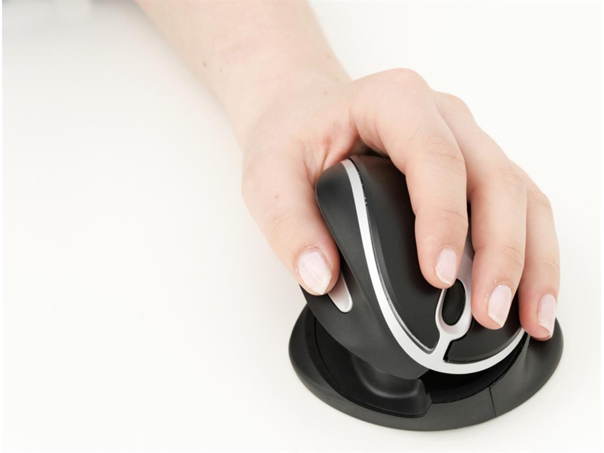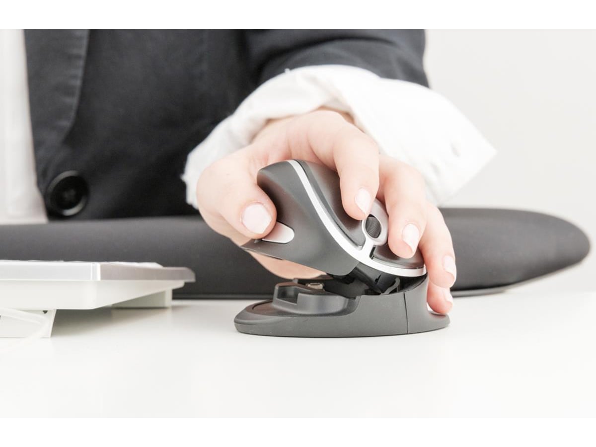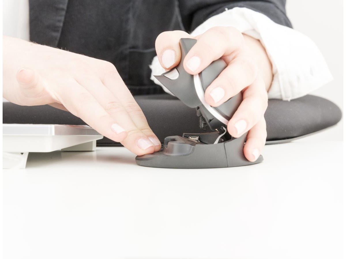 Denne computermus ligger godt i hånden med et specialudviklet ergonomisk greb. Vertikalmusen er velegnet til både højre- og venstrehåndede. Musen kan justeres i 10 forskellige ønskede positioner.