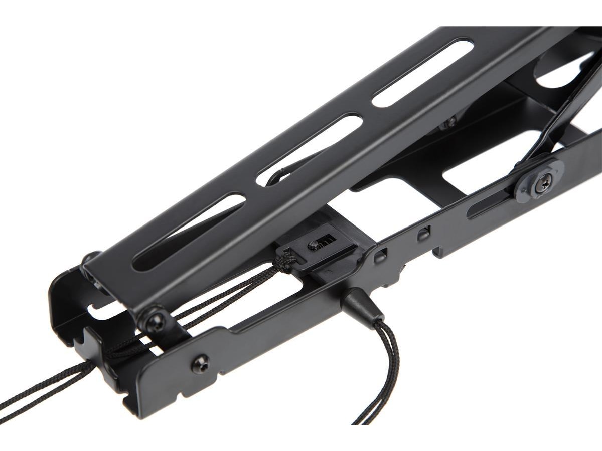 Vægbeslaget rager kun 35mm ud fra væggen og er perfekt til at få fjernsynet tæt ind til væggen. En smart fast-lock låsemekanisme holder TV-skærmen forsvarligt på plads. Denne mekanisme har en quick-release, som du nemt kan betjene med to snore. Så kan du nemt tage fjernsynet ned fra væggen. Quick-release-snorene gemmes bag ved TV´et med en indbygget magnet på spidsen. Med dette beslag kan fjernsynet kontrolleret vippes frem, for at få adgang til stik og kabler bagpå. I skærmbeslaget er der også en vippefunktion, der gør det muligt at vippe dit TV 12 grader fremad, for en bedre betragtningsvinkel. Dette vægbeslag giver dig mulighed for at montere skærmen i enten landskabs- (vandret) eller portrætposition (lodret).