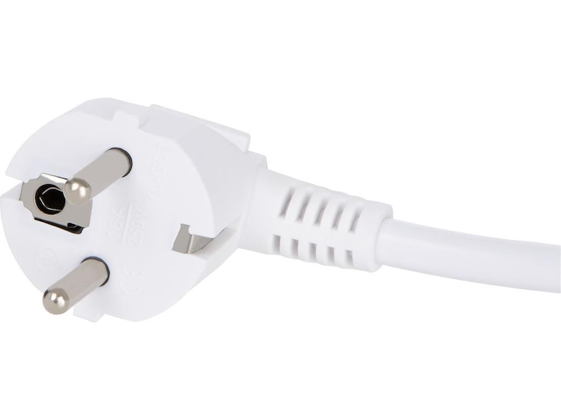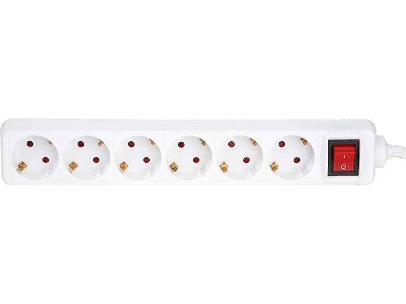 Denne strømforgrene er med jord og har seks udtag og en netforbindelse. Det har en tænd/sluk-knap og børne-/ »pilfinger«-sikring for ekstra sikkerhed. Kablet er 1,5 m langt.