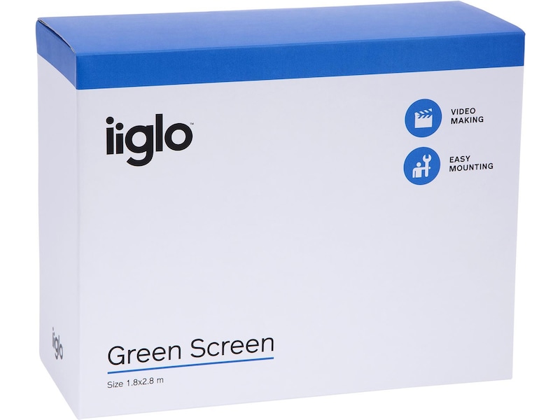 iiglo greenscreen er et grønt klæde af vævet bomuld, der nemt kan hænges op, hvor du har brug for det. Da det har en påsyet kanal, kan det hænge på en rack eller en stang. Det kan også monteres direkte på væggen med stifter eller kraftig tape.