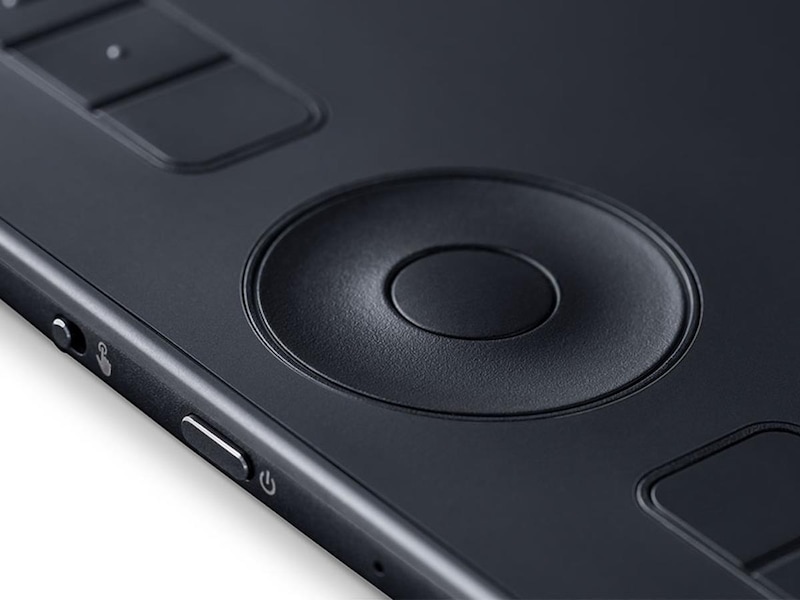 Wacom Intuos Pro comes in both Medium and Large sizes. Each has a smaller, more compact footprint than previous models. Wacom Intuos Pro is built using premium materials such as black anodized aluminum and fiberglass composite resin. The result is a pen tablet that feels reassuringly strong but is a mere 8mm thick.