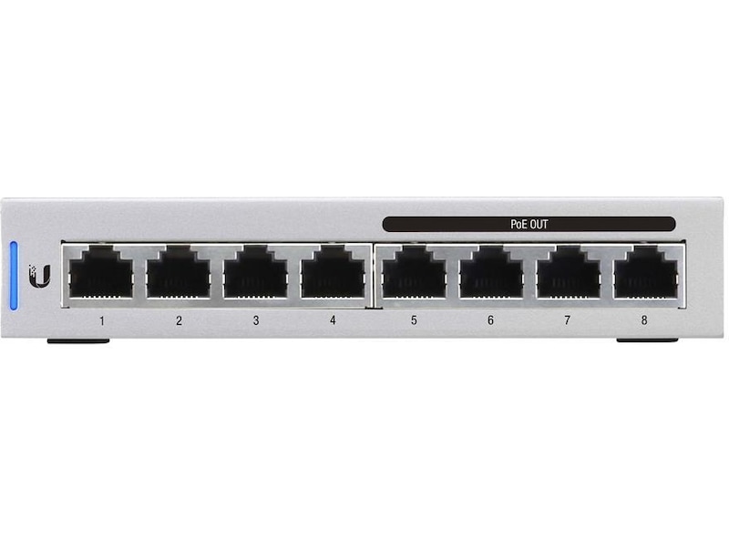 - En 8-ports, Layer 2 PoE-switch med et lydløst, blæserløst kølesystem.