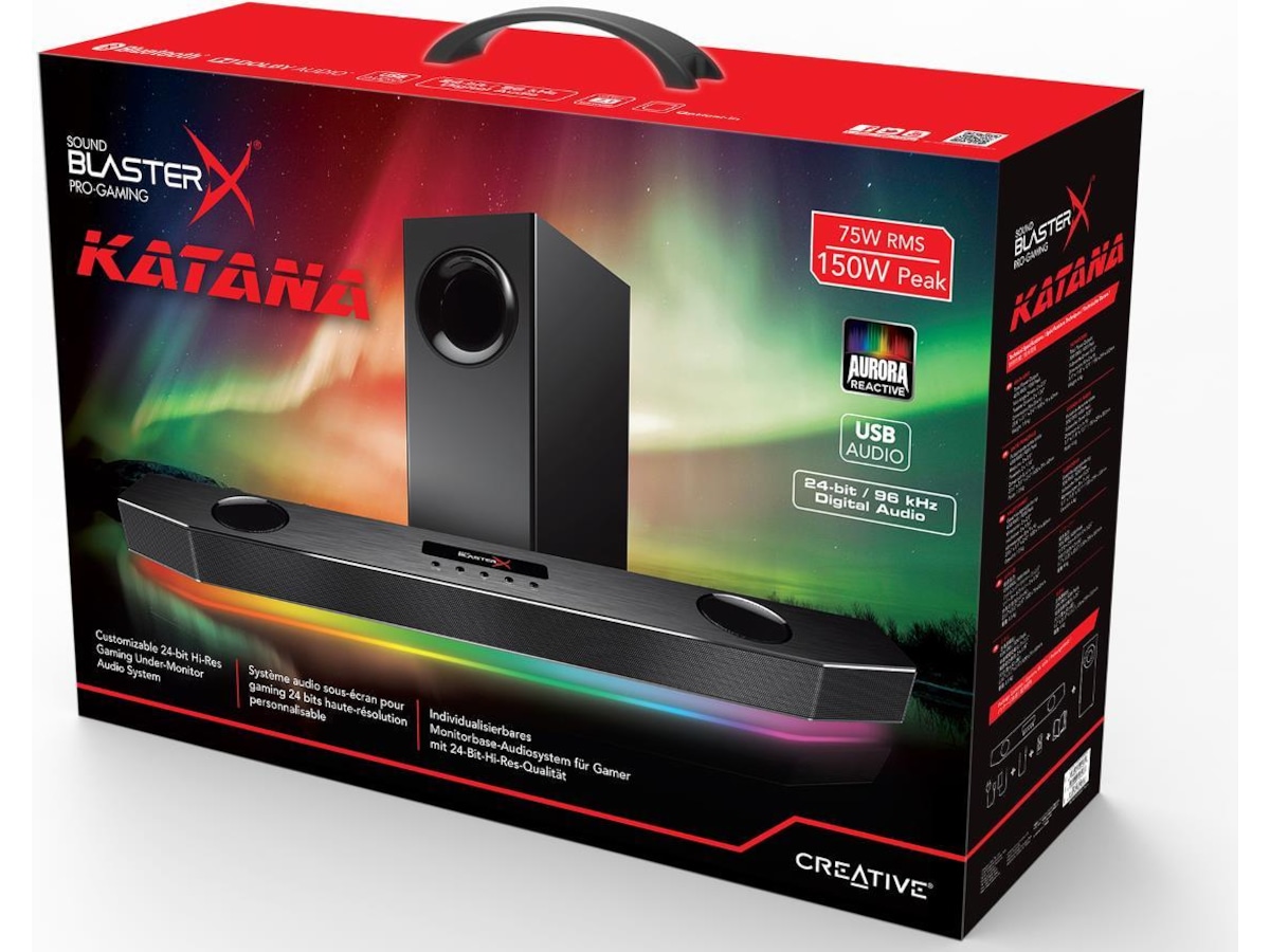 Opkaldt efter sværdet så teknologisk perfekt i struktur og så krævende i sin skabelse, Sound BlasterX Katana udviser den samme slanke raffinement og formidabel styrke i sit design og lydstyrke. I en klasse for sig, Katana passer lige under din skærm med en slankhed, der er uovertruffen af andre såkaldte gaming “lydbjælke”, og er udstyrte ned og forstærket af vores prisbelønnede multi-core lyd-DSP, hvilket gør den til verdens første sande UMAS (Under Monitor Audio System). Desuden har Sound BlasterX Aurora Reactive belysningssystem, en serie af 49 programmerbare LED lyser foret fra kant til kant af Katana's kabinet, hvilket udgør den perfekte supplement til fuldt ud at optimere og tilpasse opsætning af din pc og dit skrivebord.