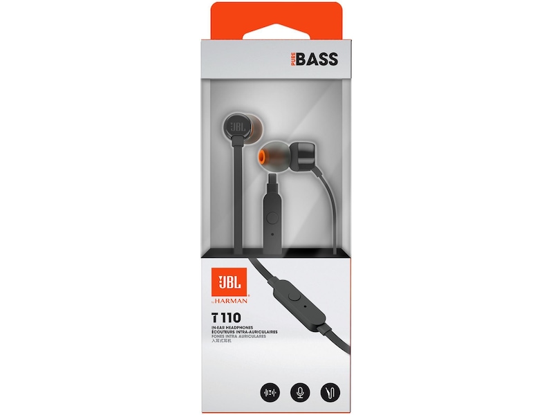 Introduktion til JBL T110 in-ear hovedtelefoner. De er lette, komfortable og kompakte. Under det holdbare øresnegl-kabinet producerer et par 9 mm-drivere en vild bas, der gengiver JBL Pure Bass lyden, som du har oplevet i koncertsale, arenaer og lydstudier over hele verden. Derudover kan 1-knaps fjernbetjeningen på et sammenfiltringsfrit fladkabel styre musikafspilningen, samt besvare opkald på farten med en indbygget mikrofon. Gør JBL T110 til din hverdagskammerat på arbejdet, derhjemme og på farten.