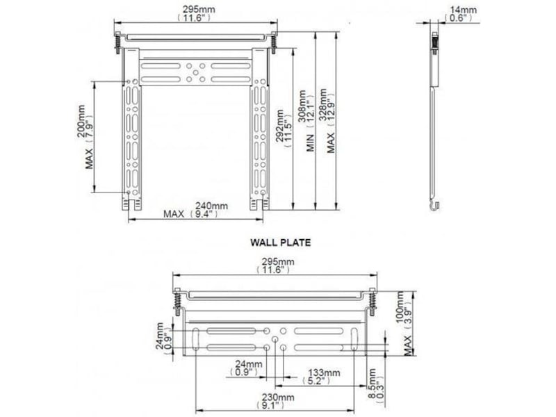 - Det ultraslanke design monterer skærmen med kun 14mm (0,6") afstand til væggen