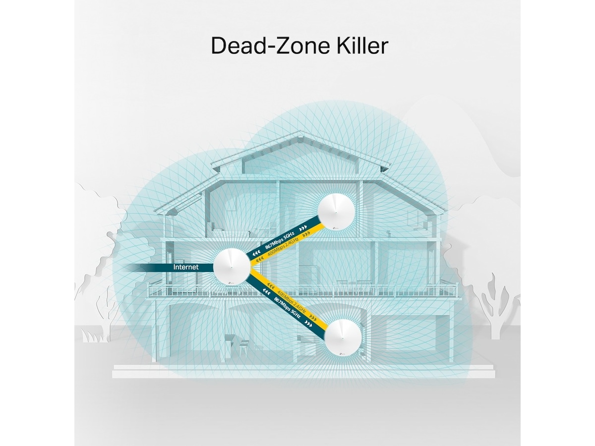 Deco er en Wi-Fi-løsning til hele hjemmet med den mest omfattende sikkerhed. Den leverer hurtig, uafbrudt Wi-Fi til hvert værelse ved at udnytte kraften af tre separate AC1300 enheder til sømløs dækning på op til 4.500 sq. ft. Deco er også let at oprette og udvide, når du tilføjer flere enheder til dit hjem. Og Deco understøttes af branchens eneste 24/7 livstidsstøtte.