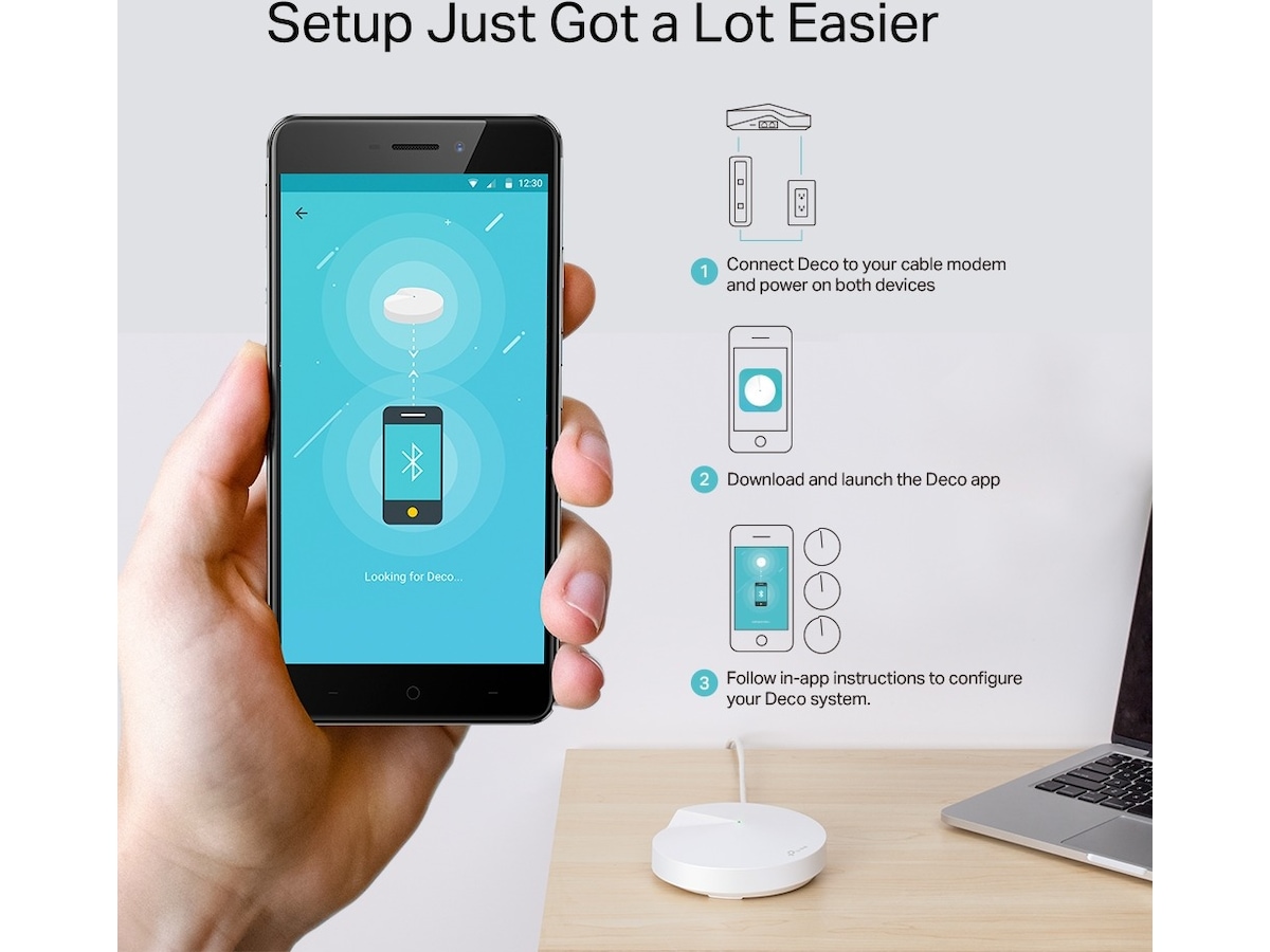 Deco er nem at opsætte. Du skal blot downloade appen og lade Deco finde det perfekte sted for den bedste dækning.