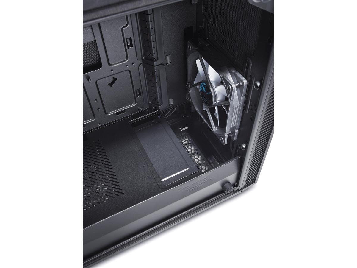 | Kølesystem | Bagside: 120 x 120 x 25 mm ventilator x 1 / udstødning / 1200 rpm / 52,3 cfm / 19.4 dBA, Nederst: 120 mm blæserstativ x 1, Front: 120 x 120 x 25 mm ventilator x 1 / indtag / 1200 rpm / 52,3 cfm / 19.4 dBA / 2 x 120/140 mm blæser understøttet, Top: 120/140 mm blæserstativ x 2 |