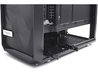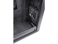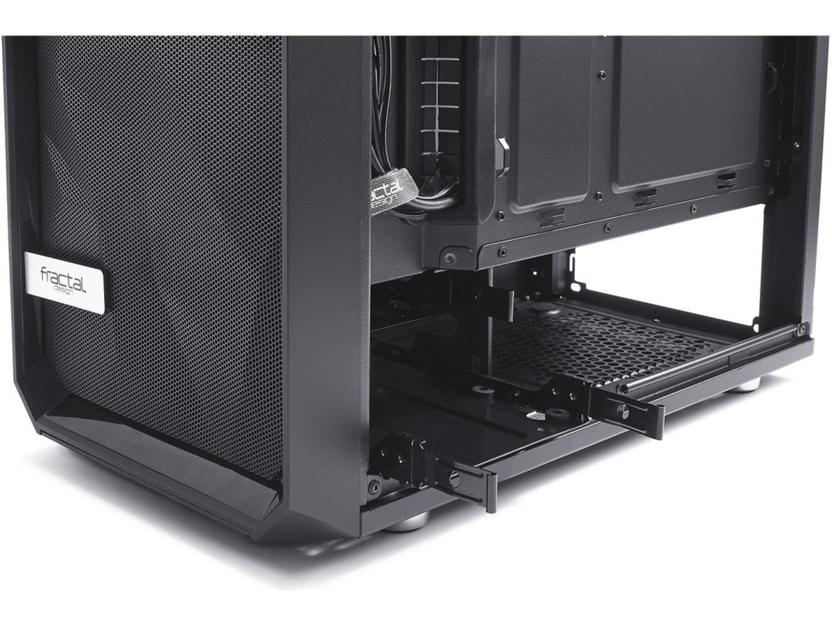 - Fuldlængde strømforsyning afskærmning skjuler drevbur og overskydende kabler for ubegrænset luftstrøm og et interiør med et rent look