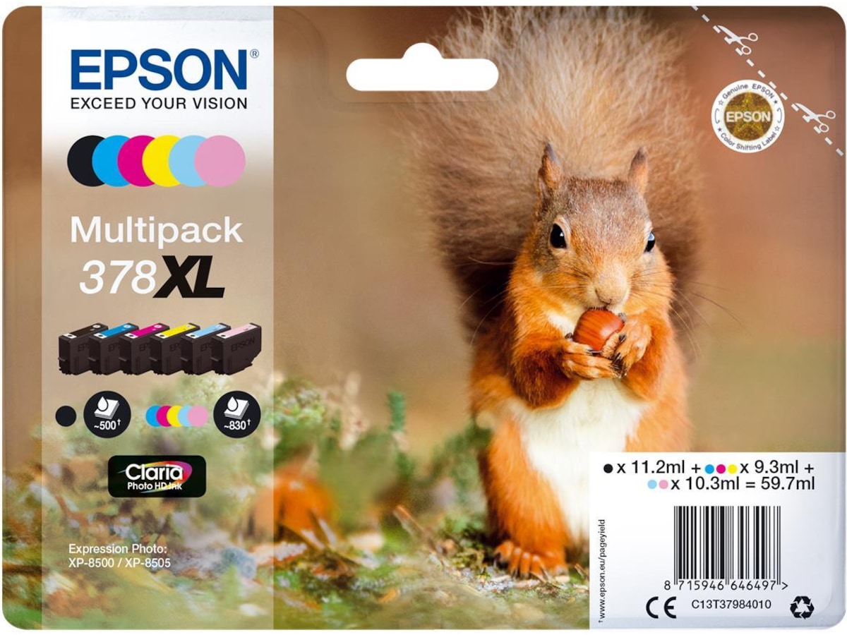 | Med forbrugsartikler | 1 x blækpatron (sort) - 11.2 ml - op til 500 sider, 1 x blækpatron (lys magenta) - 10.3 ml - op til 830 sider, 1 x blækpatron (lys cyan) - 10.3 ml - op til 830 sider, 1 x blækpatron (cyan) - 9.3 ml - op til 830 sider, 1 x blækpatron (gul) - 9.3 ml - op til 830 sider, 1 x blækpatron (magenta) - 9.3 ml - op til 830 sider |
