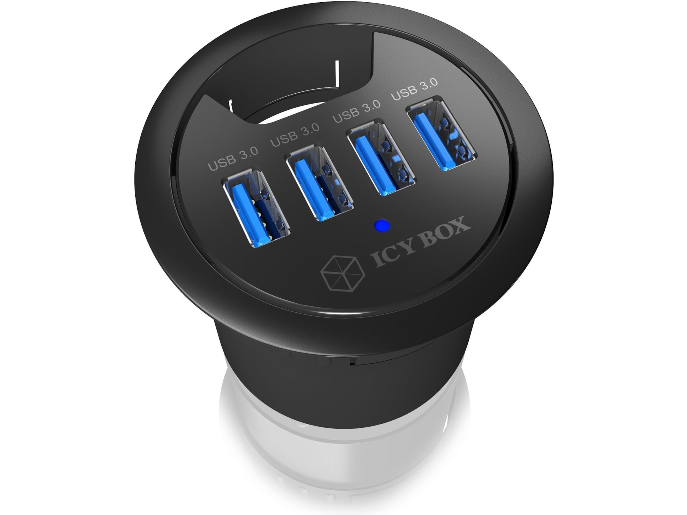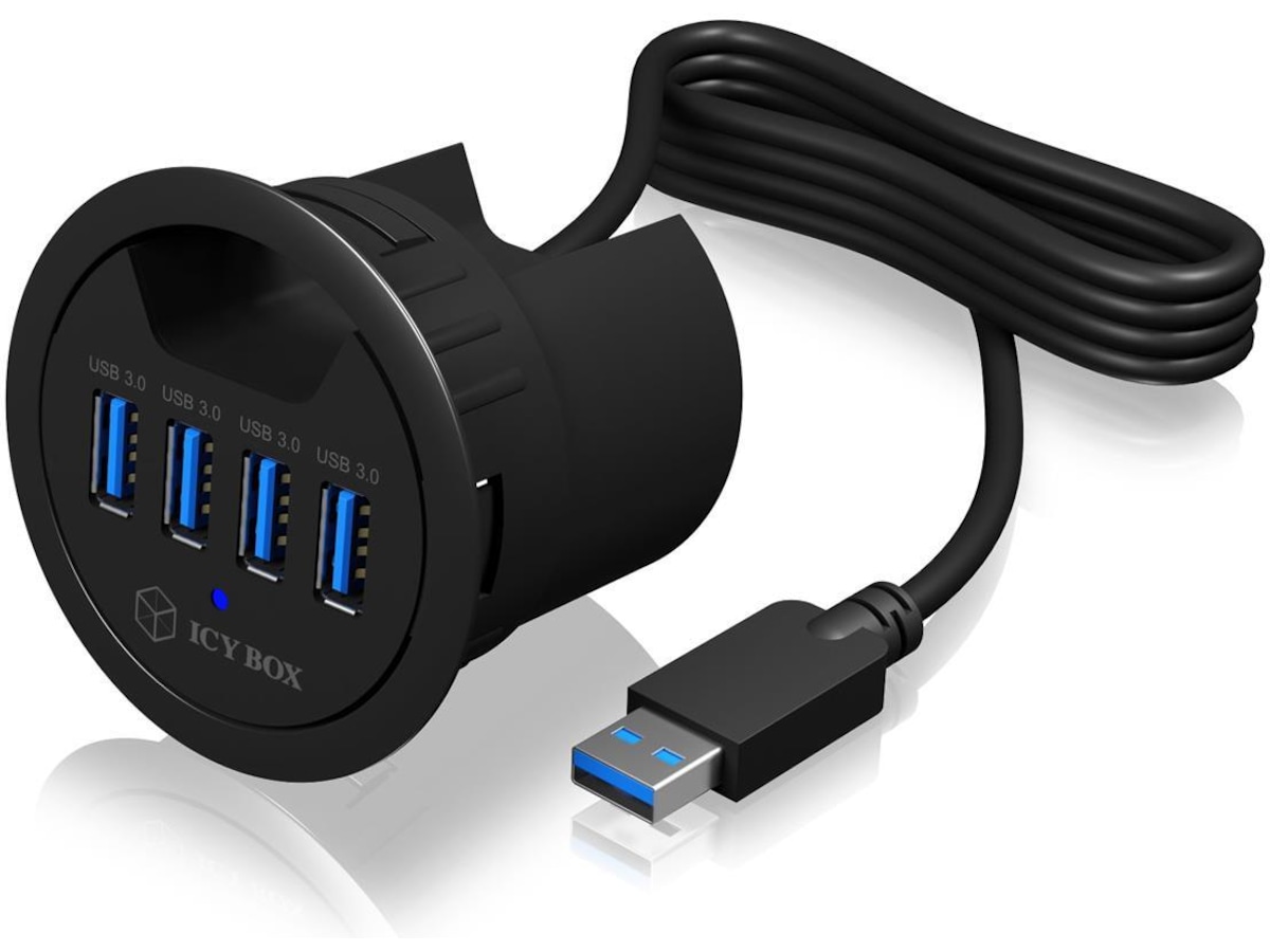 ICY BOX IB-HUB1403 USB 3.0 hub med 4 porte indbygget i skrivebordet