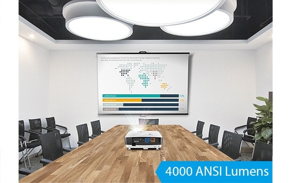 En lysstyrke på 4.000 lumen gør det muligt at levere mere behagelige præsentationer med lyset tændt og derved fremme diskussioner, samarbejde og nedskrivning af noter i større mødelokaler beregnet til omkring 40 deltagere. Den høje lysstyrke øger billedkvaliteten med mere levende farver og sørger for at teksten på lærredet er let læselig for selv de bagerste deltagere.