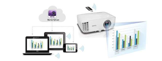 MH733 kan forbindes med QCast-appen, der gør det let at styre præsentationen fra en pc eller smart-enheder. QCast-appen hjælper dig med at vise en lang række forskellige filer, inklusive fotos, PowerPoint-, Word-, Excel- og PDF-filer fra dine computere eller smart-enheder på det store lærred. QCast-appen har også andre nyttige funktioner til at gøre arbejdet lettere og øge effektiviteten på møder.